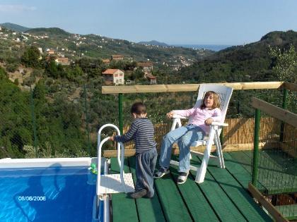 Apartamentos, terrazas y de la piscina, pueden comtemplar las colinas típicamente de Liguria con sus olivares, sus bosques de castaños y sus pequeños chalets ocultados en el verde de los árboles. Más bajo, perciben la costa y el azul maravilloso del mar de Liguria.