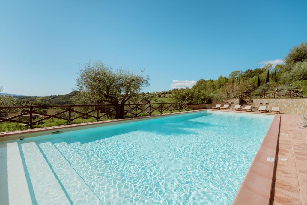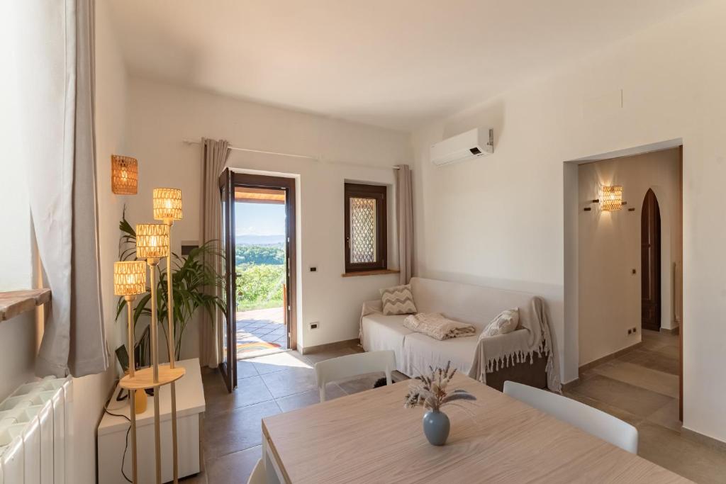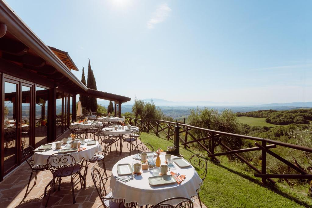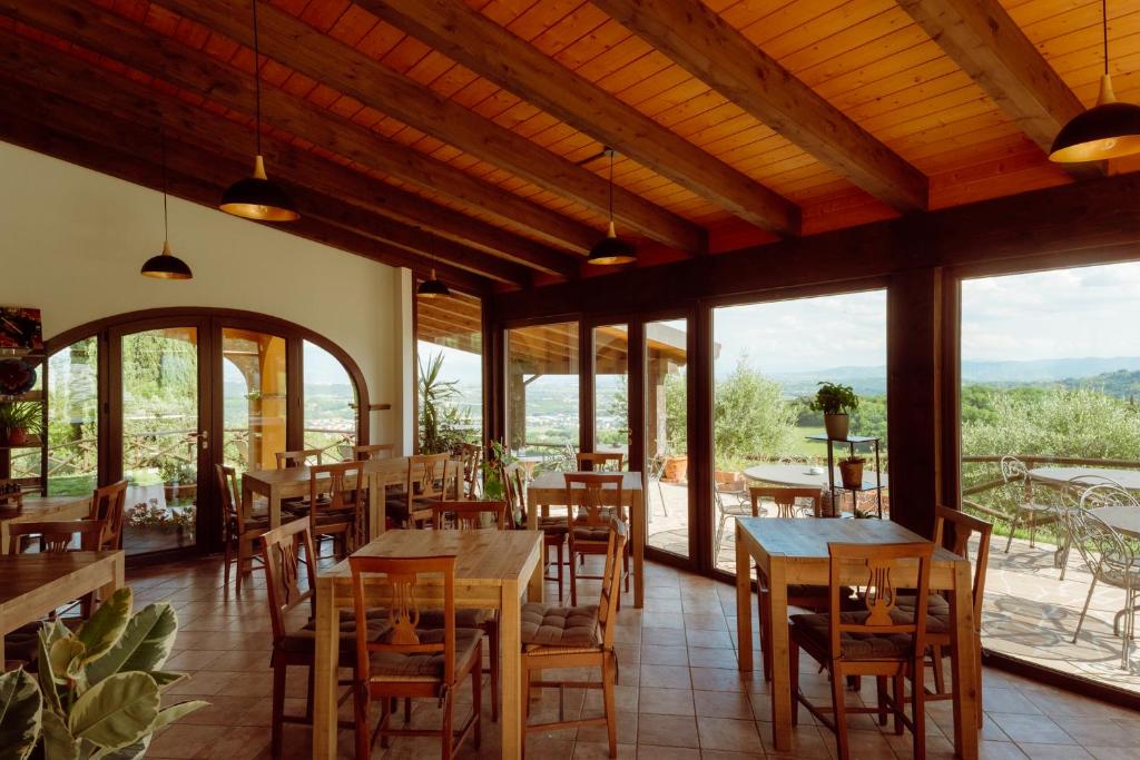 La propiedad ofrece piscina al aire libre entre los olivos, comedor con terraza panorámica, desayuno con productos locales y aparcamiento privado gratuito.
