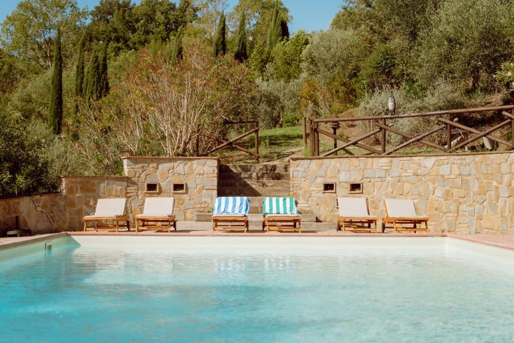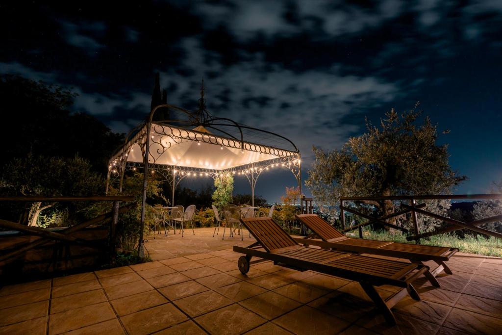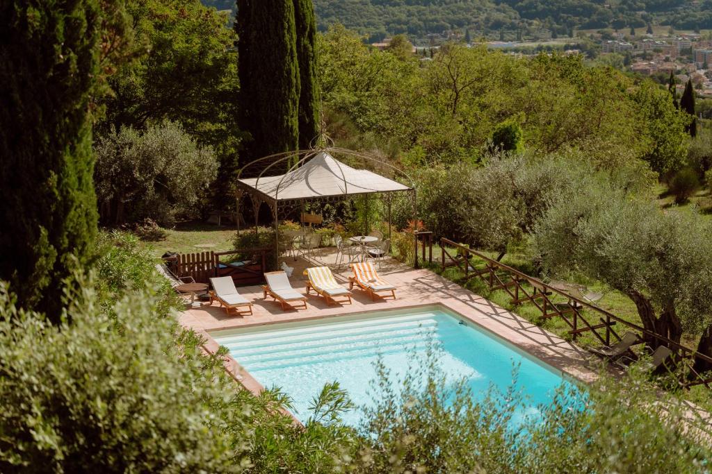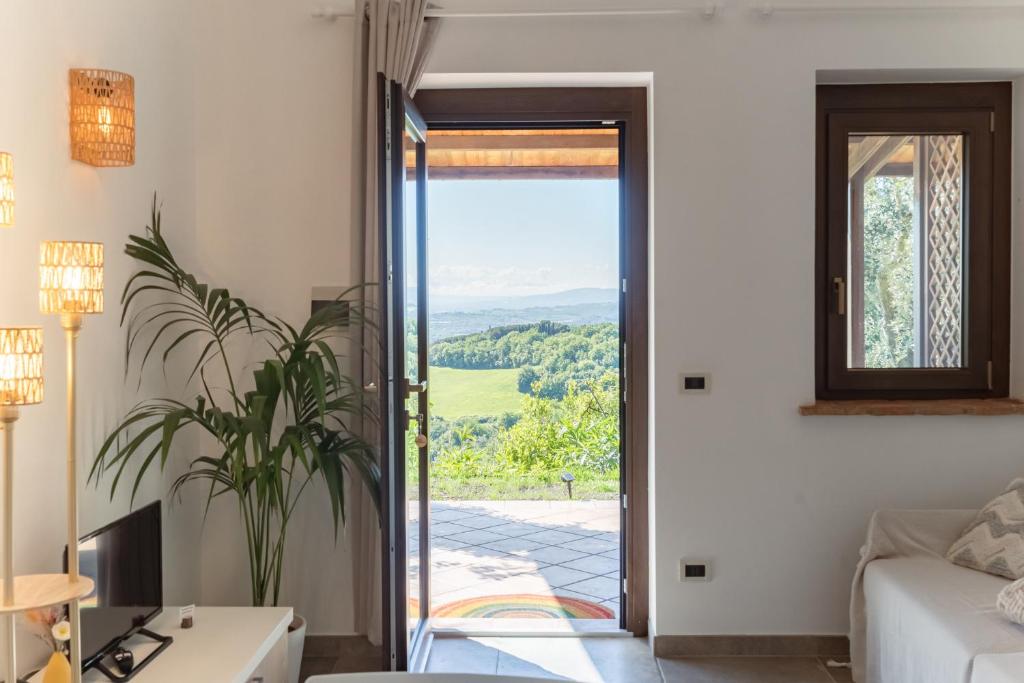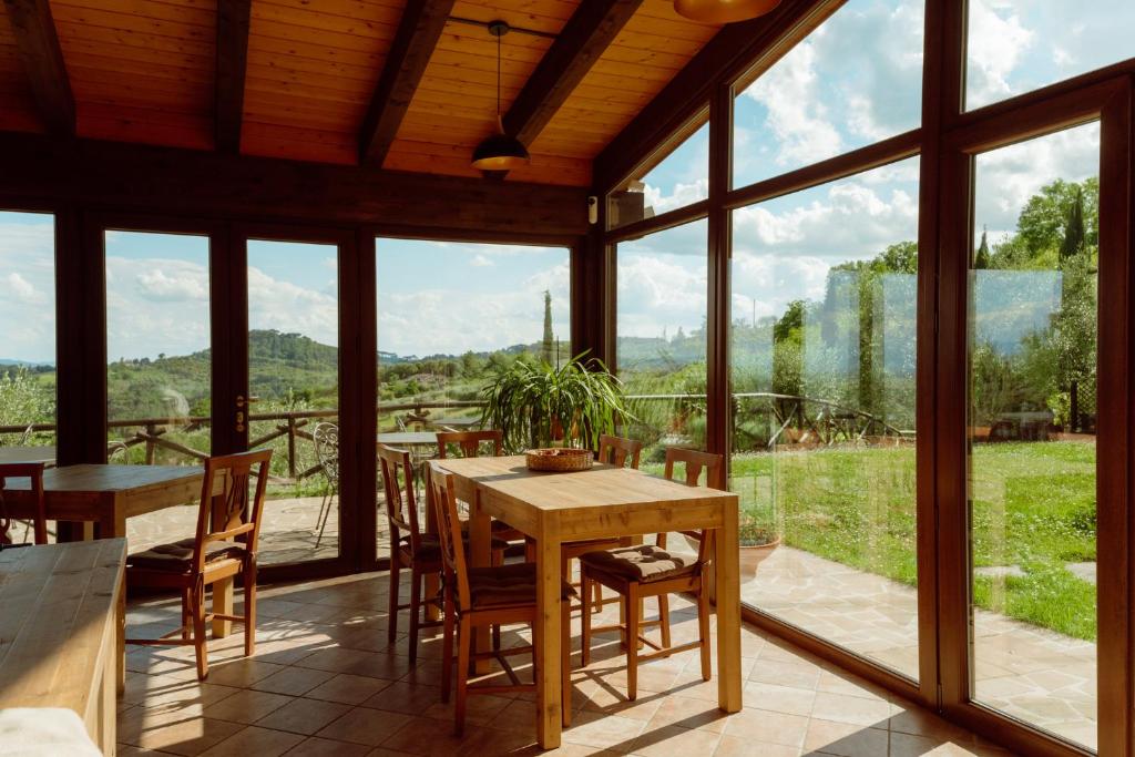 La propiedad ofrece piscina al aire libre entre los olivos, comedor con terraza panorámica, desayuno con productos locales y aparcamiento privado gratuito.